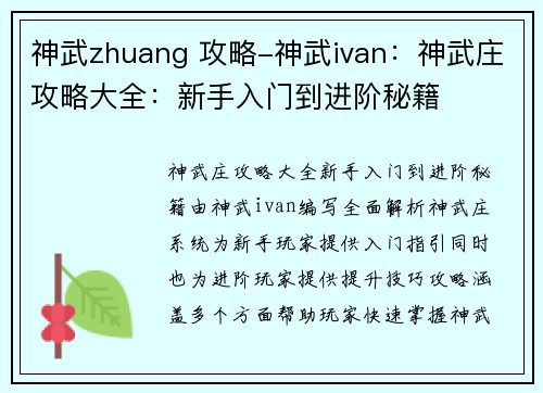《精灵大冒险:闪电鸟征服指南,陷阱与挑战尽在掌握》一书是专门为《精灵大冒险》玩家打造的终极攻略指南,旨在帮助玩家征服强敌闪电鸟,避免在冒险过程中遭遇陷阱和挑战。 战斗策略指南 此章节详细阐述了与闪电鸟战斗的最佳策略。玩家将了解闪电鸟的攻击模式、弱点和应对方法。指南还提供了推荐的精灵阵容和招式搭配,帮助玩家最大化战斗优势,从而有效击败闪电鸟。 陷阱预警与规避 该章节汇集了游戏中所有与闪电鸟相关的陷阱...
